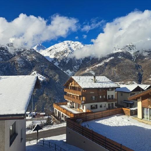 Die gut ausgestattete Küche grenzt unmittelbar an den Wohnraum an und ist mit diesem über einen Essplatz für bis zu sechs Perspnen verbunden. Von überall haben Sie einen Ausblick auf die umliegenden Berge.