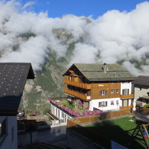 Die gut ausgestattete Küche grenzt unmittelbar an den Wohnraum an und ist mit diesem über einen Essplatz für bis zu sechs Perspnen verbunden. Von überall haben Sie einen Ausblick auf die umliegenden Berge.